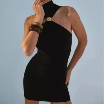 Y2K Off-Shoulder Turtleneck Mini Dress