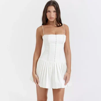 Spaghetti Strap Pleated Mini Dress – Sexy Backless Party Dress for Spring/Summer 2024