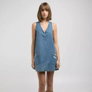 Replay Women’s Light Blue Sleeveless V-Neck Dress with Pockets