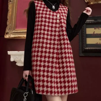 Chic Red & White Plaid Irregular Sleeveless Mini Dress for Women
