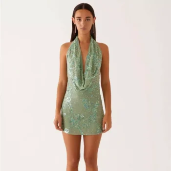 Sequin Backless Deep V Mini Dress