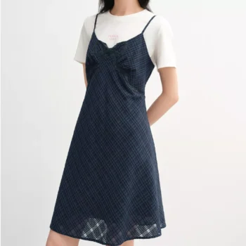 Chic Two-Piece Plaid Shirt Dress Set with Bow & Strappy Detail