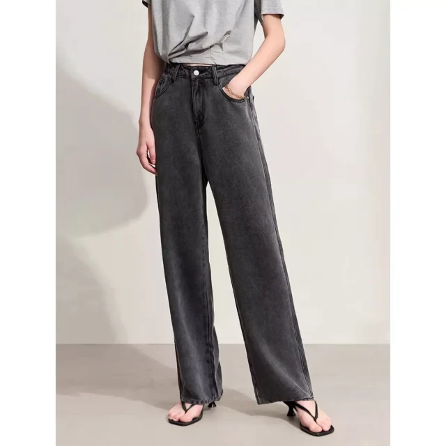 Minimalist High Waist Women’s Baggy Jeans – Vintage Tencel Straight Pants