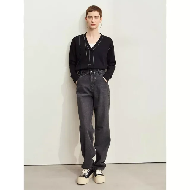 The Minimalist Knit Cardigan stands out with its unique blend of materials and thoughtful design details. The spliced edge fringe and drop sleeves bring a modern edge to a classic piece, while the V-neck and single-breasted closure offer a timeless appeal. It’s not just a cardigan; it’s a statement of effortless style and comfort.