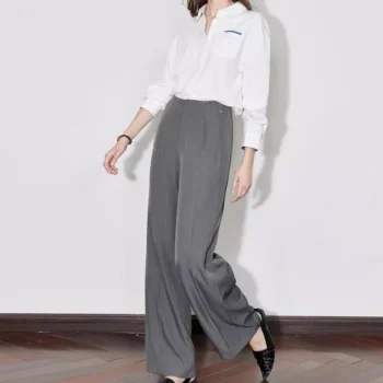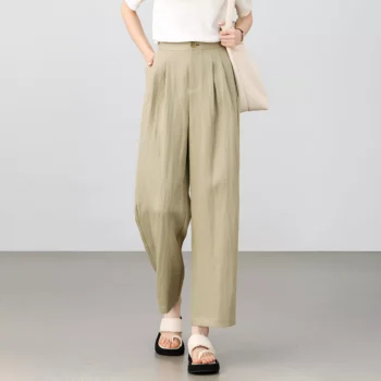 High Waist Linen Blend Straight Pants for Women – Casual Office Style