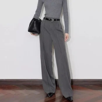 Mid-Waist Pleated Wide Leg Casual Pants for Women