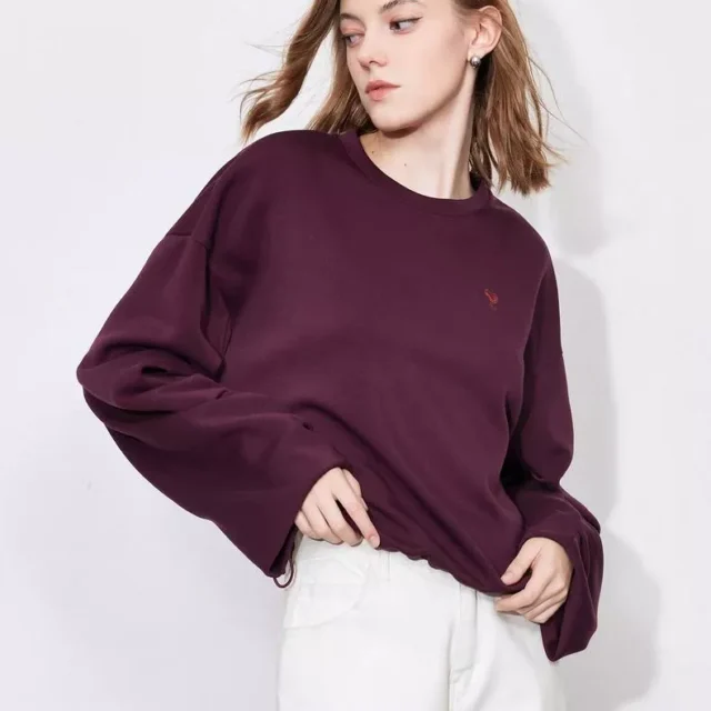 This pullover hoodie is not just another basic piece—it’s a wardrobe essential designed with both comfort and style in mind. The solid purple color brings a pop of vibrancy to your fall and winter outfits, while the pleated sleeves add a touch of femininity and sophistication. Perfect for a variety of occasions, this hoodie transitions effortlessly from casual day wear to more polished office looks. The relaxed, loose fit flatters every body type, and the soft, breathable fabric ensures you stay cozy without overheating.