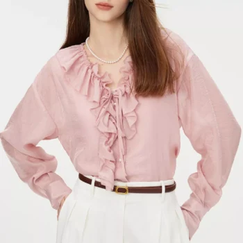 Women’s Ruffled V-Neck Vest and Blouse Set with Drop Sleeves