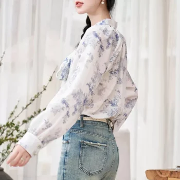 Romantic Rose Print Chiffon Blouse