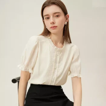 Simple Commuting Short-sleeved Embroidered Top Shirt for Women