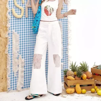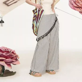 Summer Casual Striped Tassel Wide Leg Pants for Women
