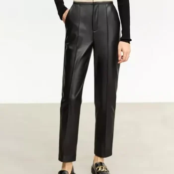 Women’s PU Leather Contrast Spliced Ankle-Length Pants