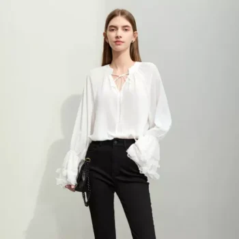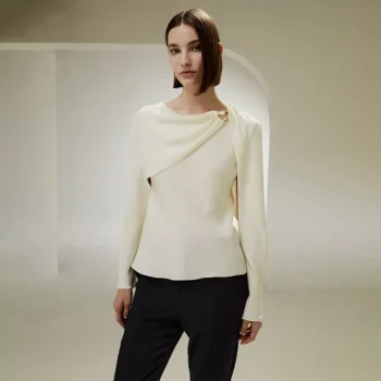 Silk Wrap Blouse with Asymmetrical Metal Ring Buckle