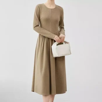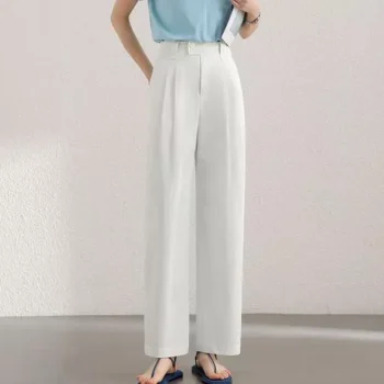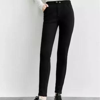 Slim Fit High-Waisted Knit Pencil Pants with Metal Button Detail
