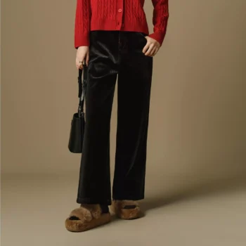 Plus Size Velvet Wide Leg Casual Pants for Women
