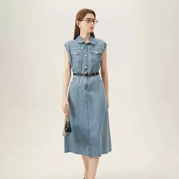 Summer Chic Sleeveless Denim Dress – Cotton Casual Straight Knee-Length