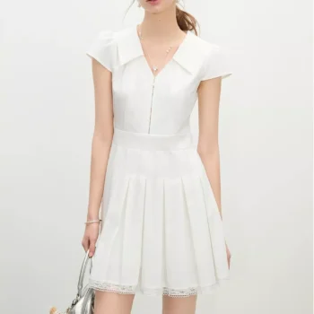 Elegant Summer V-Neck Pleated Lace Dress for Women