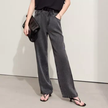 Minimalist High Waist Women’s Baggy Jeans – Vintage Tencel Straight Pants