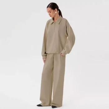 Elegant Two-Piece Set: Casual Long Sleeve Shirt & High-Waist Wide Leg Pants
