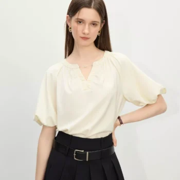 Chic Summer V-Neck Blouse with Billowy Sleeves – Casual & Office Look