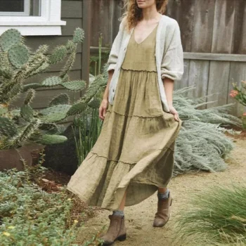 Elegant V-Neck Sleeveless Summer Maxi Dress for Women – Solid Patchwork Style