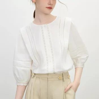 Elegant French Lace Lantern Sleeve Blouse – Summer Casual Chic