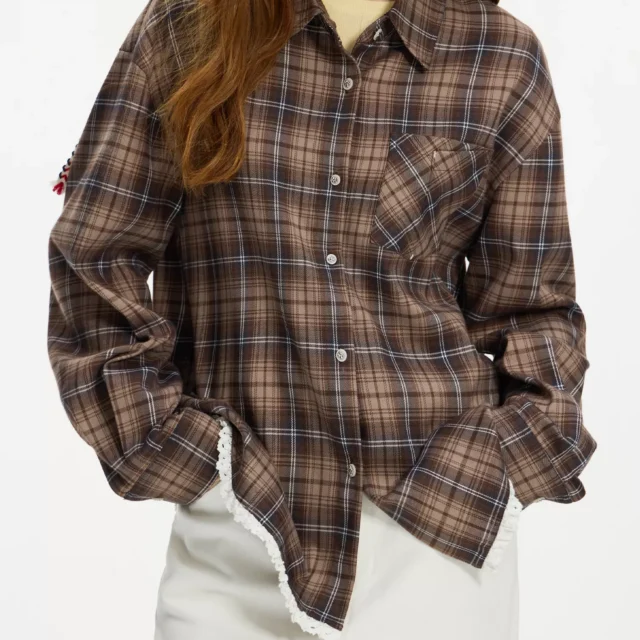 • Timeless Design: The classic brown plaid pattern exudes vintage charm, complemented by modern details like the lace hem.