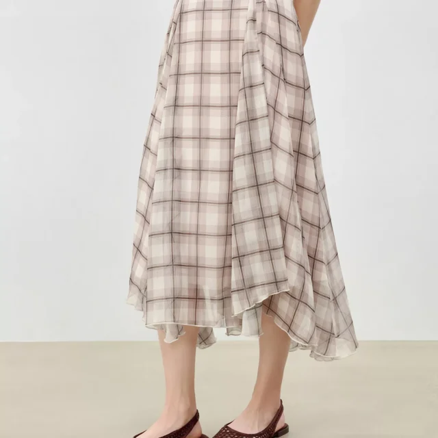Step into summer with effortless style and grace in this retro-inspired checkered midi skirt. With its flattering A-line silhouette and bold plaid pattern, this skirt brings together classic charm and a modern edge. The standout feature? A unique asymmetrical hemline that adds a playful twist and fluid movement with every step. Whether you’re dressing up for a garden brunch or adding flair to your everyday wardrobe, this skirt is made to make you feel confident and effortlessly chic.