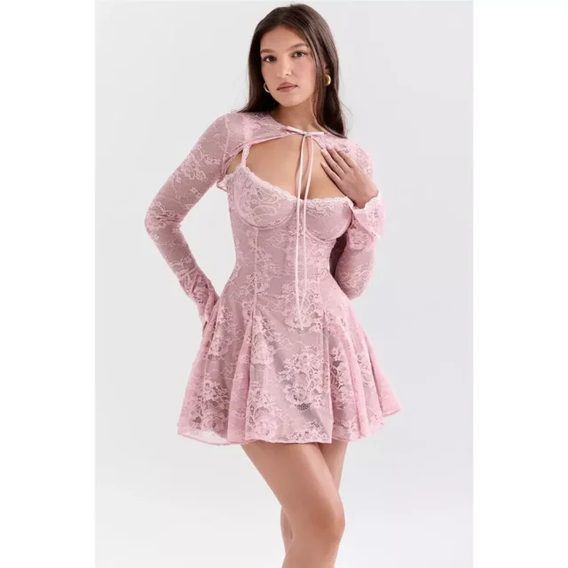 Sexy Mini Lace Flare Dress with Long Sleeve