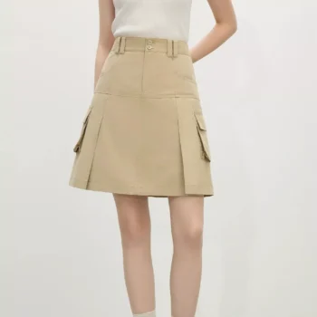 Summer Linen Cotton A-Line Midi Skirt with Triple Vents
