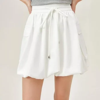 Minimalist Chic Grey Bow Tie Pleated A-Line Skirt for Women