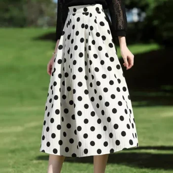 Vintage High Waist Polka Dot A-Line Midi Skirt for Women