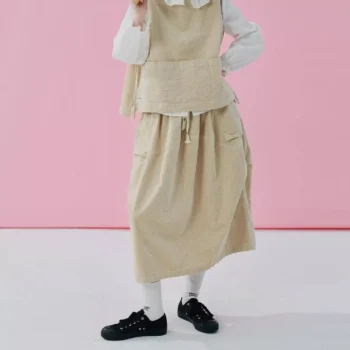 Spring Cotton Washed Corduroy Lantern Skirt with Pockets