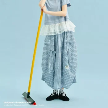 Artistic Plaid Cotton A-Line Lantern Skirt with Pockets