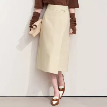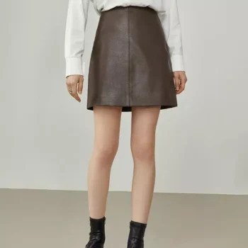 Women’s High Waist Brown Leather Skirt