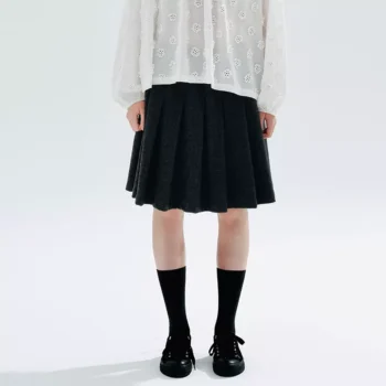 Autumn Elastic Waist Pleated Wool Skirt for Women