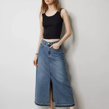 High Waist Open Split Pocket Denim Skirt