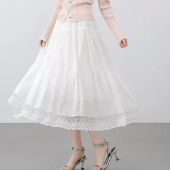 White A-Line Midi Skirt with Lace Details for Women – Perfect for Spring & Summer