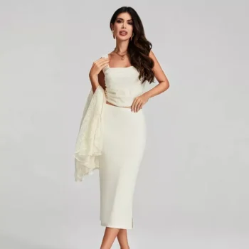 Elegant Lace Two-Piece Set for Women – Sleeveless Top and Long Skirt
