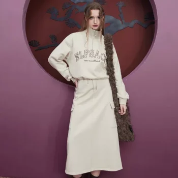 Autumn Fleece Pullover Skirt Sports Suit for Women