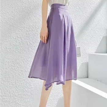 Spring Orange A-Line Skirt with High Waist and Symmetric Pockets