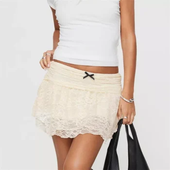 Slim Y2K Ruched Mesh Mini Skirt for Women – Double Layered A-Line Streetwear