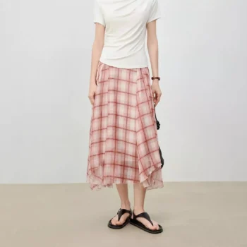 Retro Checkered Midi Skirt with Asymmetrical Hem