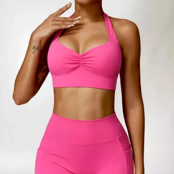 Sexy Halter Sports Bra High Support Ruched Push-Up Padded Gym Top