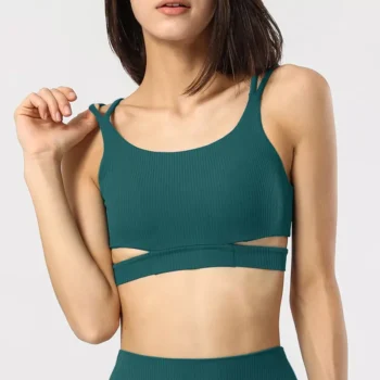 Women’s Ribbed Yoga Sports Bra – Sexy Back, Padded Gym Top