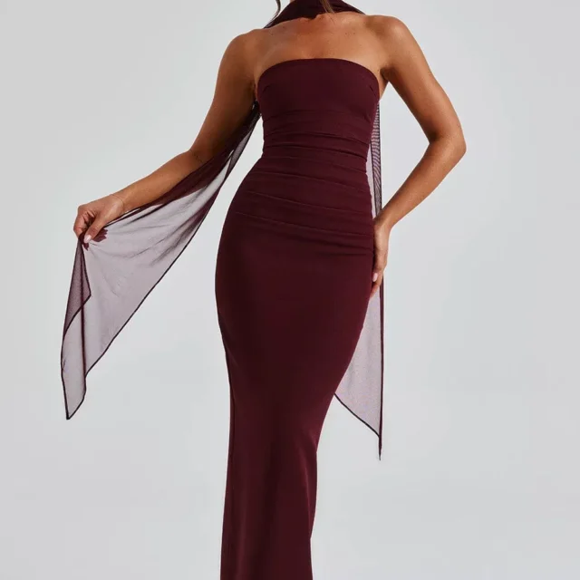 Unleash your inner diva with the Strapless Mesh Sleeve Maxi Dress. Designed for women who love making a bold statement, this dress effortlessly combines elegance and sensuality. Its strapless, off-shoulder design with sheer mesh sleeves is perfect for highlighting your natural beauty, while the bodycon silhouette hugs your curves for a stunning fit. Whether you’re attending a club party, an evening gala, or a romantic dinner, this ankle-length gown ensures all eyes are on you. Crafted with a blend of polyester and spandex, the fabric offers a slight stretch for a comfortable yet snug fit. The rich color adds a touch of sophistication, making it a timeless choice for any formal or semi-formal occasion. Its pullover design ensures easy wear, and the mesh detailing adds a layer of intrigue to the overall look.