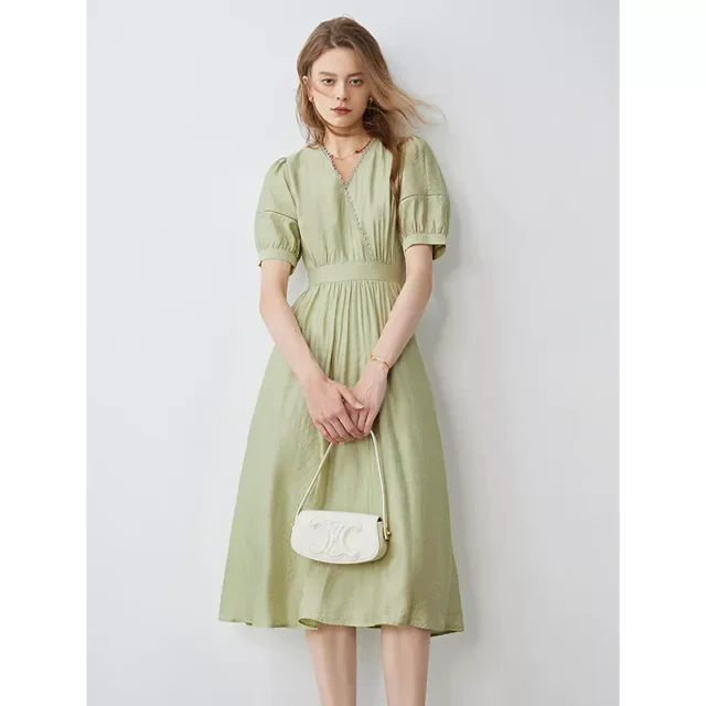 The combination of aesthetic appeal and practical design sets this dress apart. The elegant A-line profile and mid-calf length offer a timeless appeal, while the modern touches like bubble sleeves and lace decorations ensure you stand out in any crowd. Plus, the pullover closure means slipping into this dress is as effortless as it looks.