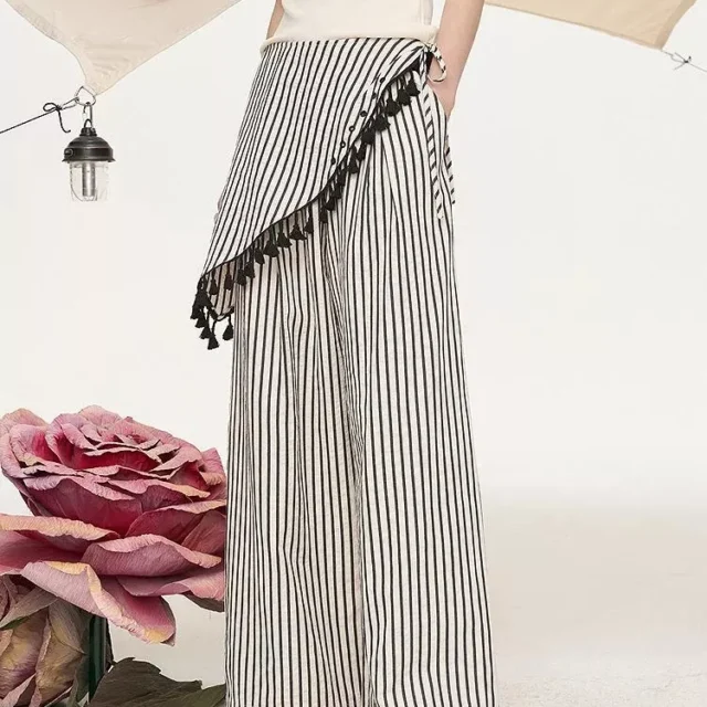 Summer Casual Striped Tassel Wide Leg Pants for Women