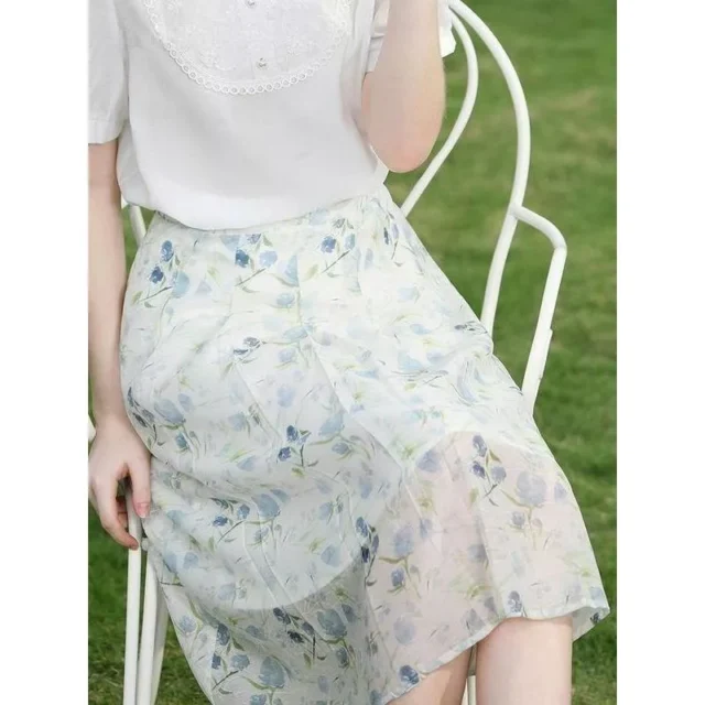 Summer Floral Chiffon Midi Skirt