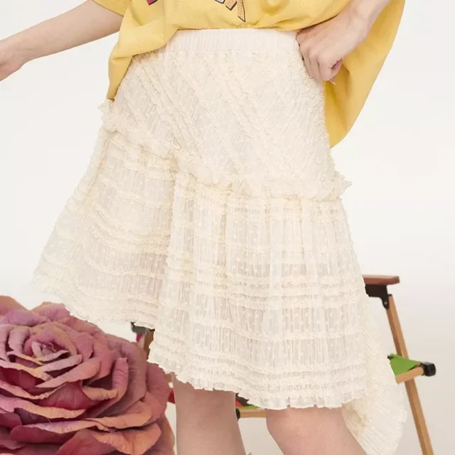 Summer Jacquard Pleated A-Line Skirt – Casual Knee-Length Woven Skirt